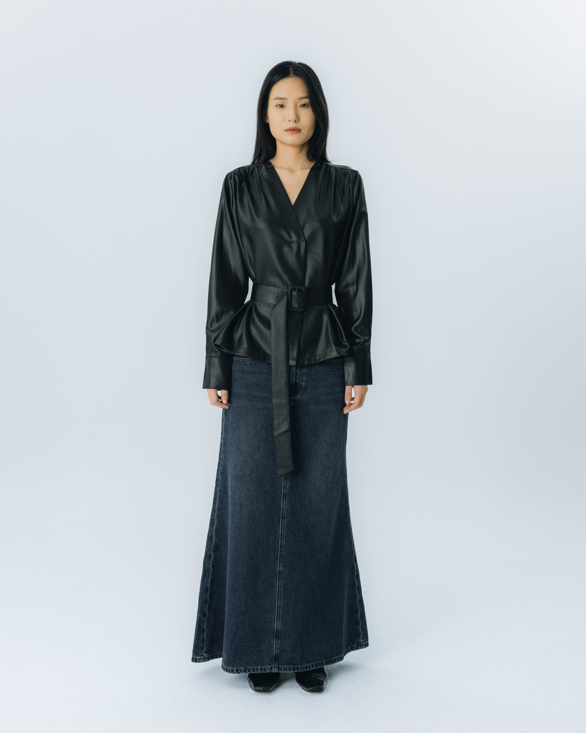 Chic V-Neck Long Sleeve Top with Waist Belt